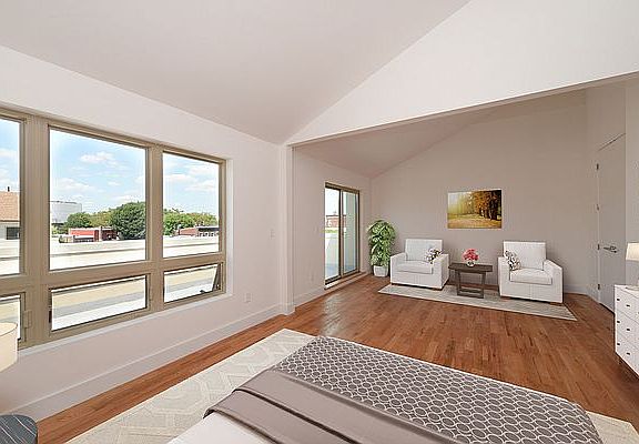 This spacious two-bedroom features 8 feet wide windows as well as 9 feet high doors. Enjoy the oversized windows which offer an over-abundance of light. Unit has high ceilings and blond hardwood floors throughout providing an open feel of this home. The gourmet-style kitchen offers all stainless steel appliances: including an Avanti dishwasher, Frigidaire refrigerator, Samsung over-the-stove microwave and Samsung self-cleaning gas range. The custom grey lacquer along with white caeserstone countertops with a splash of contrasting dark grey glass tile completes this beautiful kitchen. The bathroom showcases cocoa stained cabinetry, beautifully set against white subway tiles, and a soothing deep soaking tub. For your comfort, there is central air conditioning and heating. This unit offers two outdoor over-sized terraces where you can enjoy outdoor dining and entertaining. This one-of-a-kind apartment will not last! Call me today for an appointment!