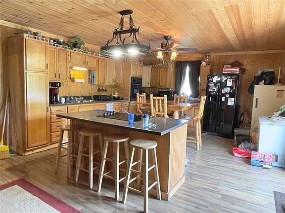 Great property for your own small hobby farm! This welcoming rustic home sits on 1.65 acres +/-, right off of a hard surface road, with a beautiful country setting. The living room, kitchen, one bedroom, one bathroom, and a laundry/pantry with cabinetry occupy the 1435 sf main floor. An additional 1000+ sf walkout basement is home to three bedrooms, a half bathroom, laundry area, as well as a utility garage/workshop area. In 2012 the home had a complete remodel, including wiring, plumbing, light fixtures, windows, insulation, etc. Other details include newer heating and cooling, an outdoor wood stove for supplemental heat, and a large wrap around deck. With existing fencing for livestock, a garden area, and a small storage shed being utilized as a chicken coop, this is the perfect set up for someone wanting a little piece of country!
