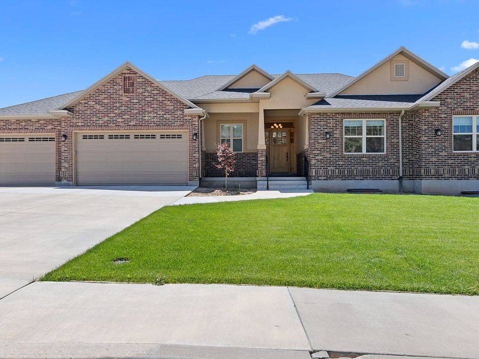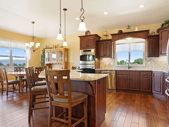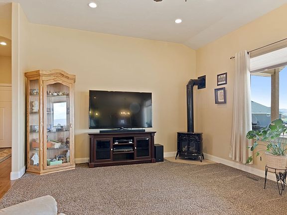 Beautiful 3 bedroom 2 1/2 bath,9 & 10 ft ceilings, 3 1/2 car 950 sq ft garage, walk out full unfinished basement with 9 ft ceilings.. beautiful kitchen, knotty alder cabinets, stainless steel appliance's, double oven, granite counter top with marble back splash. Gas log free standing stove for extra heat. central forced air heat & AC, central vacuum, humidifier on furnaces, jetted garden tub, 10 X 23 ft covered deck, large RV parking, This home has been built to be wheel chair excess able...