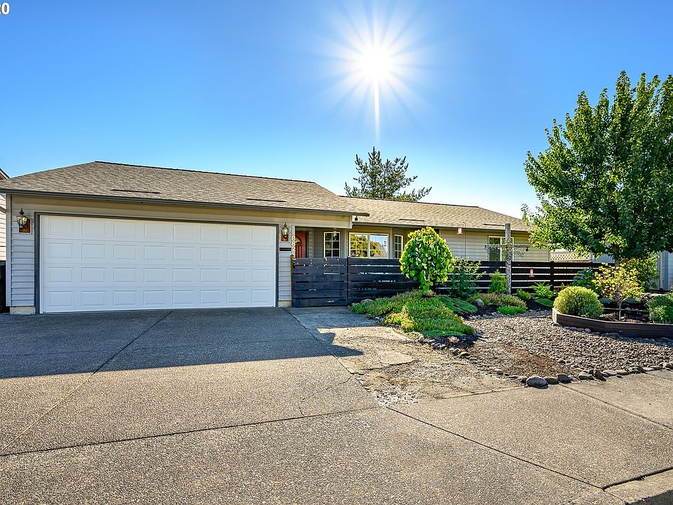 Courtyard entry in front with landscaped low maintenance front yard. Three Bedroom, two bath with family room/dining room open to kitchen and living room. Fenced backyard with shop/shed.