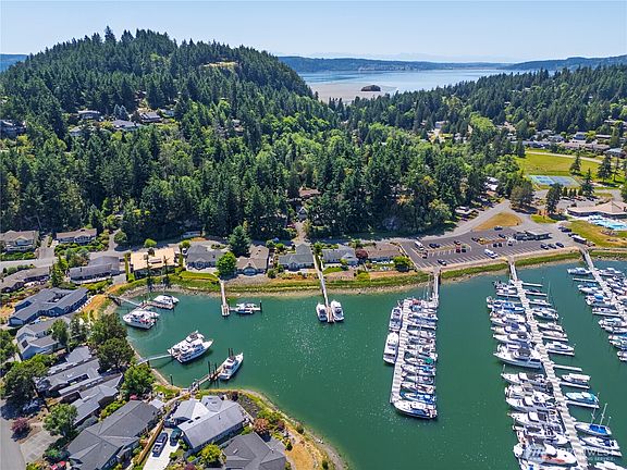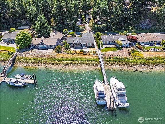 Welcome to this custom-built Lindal Cedar home in sought-after Shelter Bay! Designed for comfort & lifestyle, this waterfront gem includes a 50-ft private shared dock—perfect for boating or kayaking right from your backyard. Inside, enjoy 3/4" cherry hardwood floors, vaulted cedar ceilings, & natural light throughout. The spacious primary suite is a true retreat, featuring a walk-in closet, dual vanity, stand-up shower, & a deep soaking tub. The new HVAC system and heat pump (installed within the last 2 years) offer year-round efficiency. Modern upgrades include EV charging, ideal for sustainable living. All set in a peaceful community with amenities like beaches, marina, golf, and more. Your Pacific Northwest retreat awaits!