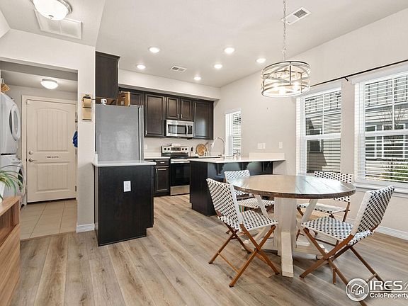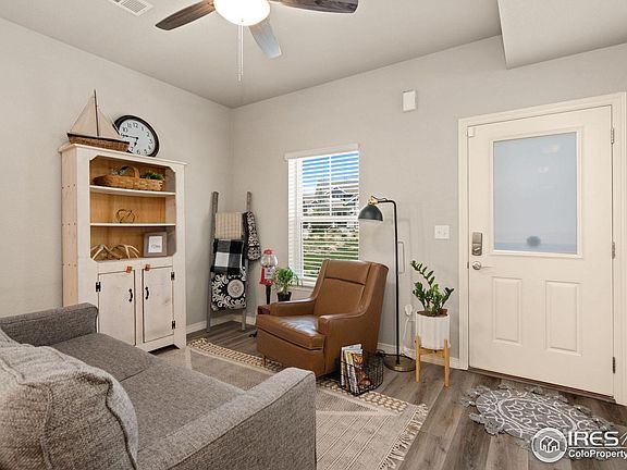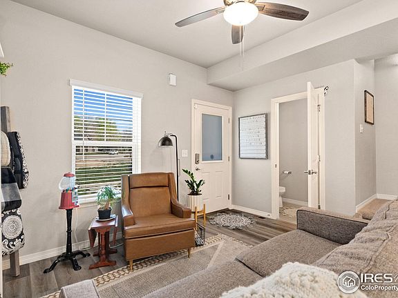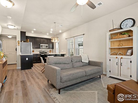 Gorgeous and well kept Townhome in the heart of Berthoud! Located close to restaurants, trails, parks, schools and the Rec Center is less than a mile away! This end unit with covered front porch and loads of natural light is situated next to a greenbelt and walking trail is steps from the front door. The open floor plan features 3 bedrooms and 3 baths, LVP floors, new carpet, tankless hot water heater, high efficiency furnace and central AC. Kitchen features quartz countertops, SS appliances and built-in desk area. Washer and Dryer also included. Upper level includes a spacious primary bedroom with ensuite 3/4 bath featuring, dual vanities, quartz tops, tile floor, extra large shower and walk-in closet. Two additional bedrooms upstairs share an additional full bath. The 1 car attached garage w/epoxy flooring has plenty of room for storage. Perfect for a comfortable and low-maintenance lifestyle with NO metro tax district.