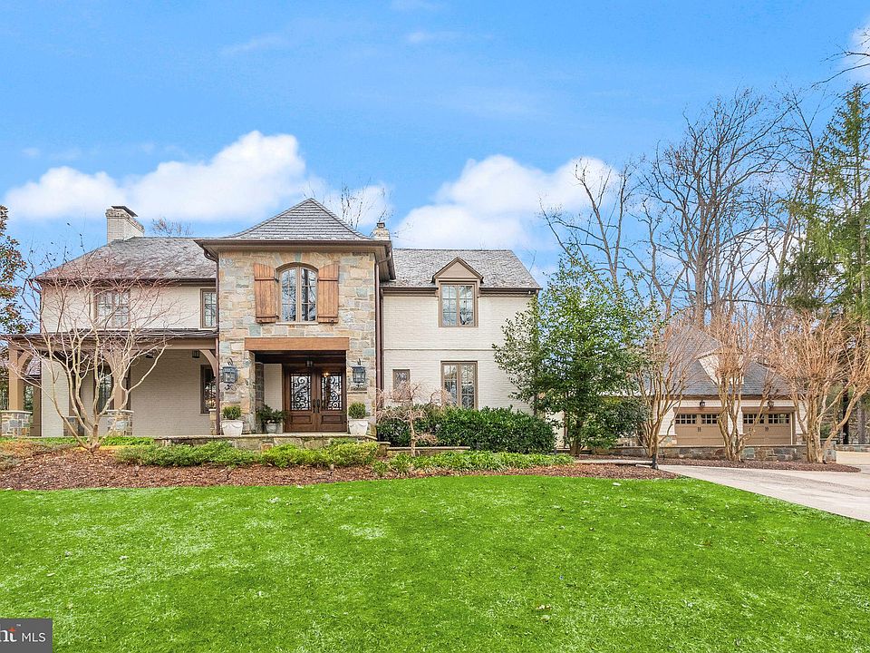 Nestled on over an acre of lush greenery, 8820 Burning Tree Road in Bethesda, Maryland, is an expansive 6-bedroom home designed for comfortable and luxurious living. This remarkable property offers wonderful indoor and outdoor living spaces, featuring an expansive flagstone patio that leads to a large, beautifully landscaped yard, perfect for entertaining or relaxation. Inside, the home boasts an open-concept kitchen and family room, ideal for casual gatherings, alongside formal living and dining rooms for more refined occasions. A private office and a charming sunroom add to the versatility of the main level. Upstairs, the spacious primary suite provides a serene retreat, accompanied by three additional bedrooms, a second office or nursery, and three additional bathrooms. The basement offers a recreation room, perfect for family activities or entertaining guests and full bathroom. Completing this outstanding property is a separate two-car garage, with a guest suite above, providing a private and comfortable space for visitors complete with its own kitchenette. This home embodies elegance, functionality, and privacy, all within a sought-after Bethesda location.