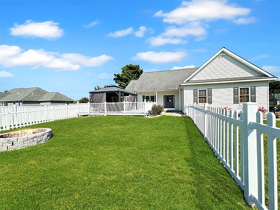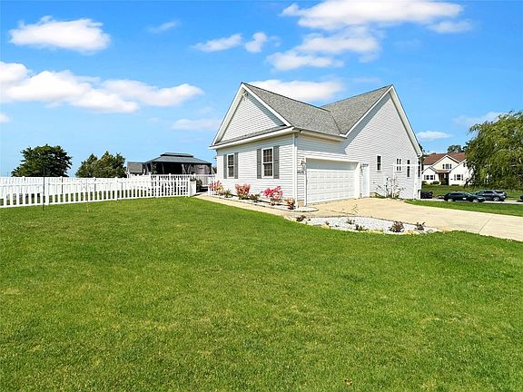 Step into the expansive main floor, where soaring high ceilings and an open floor plan create an inviting, airy atmosphere perfect for entertaining or relaxing. The seamless flow between living, dining, and kitchen areas offers endless possibilities for customization. Natural light floods the space. Enjoy the pergola in the fenced area of the front of house. The grand wall of windows is actually the back. Ranch living with finished lower level that is not completely underground. Radon mitigation system. Balcony. First floor laundry. Large walk in pantry in kitchen. Large island. Freshly painted. Includes a one year home warranty.