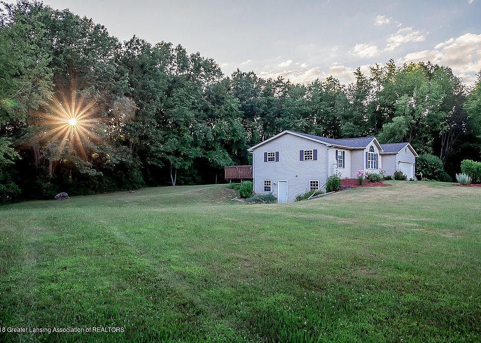 This is the property you have been looking for. 6.5 acres of secluded beauty yet conveniently close to 69 and Olivet Schools. The light filled home has almost 2000 sq ft of finished living space and there are two additional bedroom areas in the finished, walkout basement. Just add a window in one and a closet in the other. 30x40 pole barn with electric and a tranquil pond make this home the whole package
