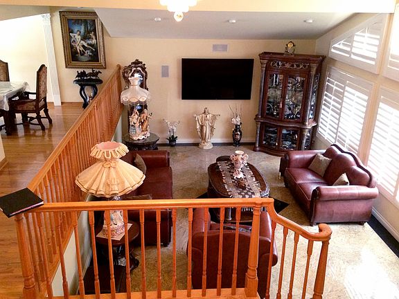 Swim with dolphins at this delightful 5 bedroom 4 bath North Hills pool home! The gated entrance welcomes you to a grassy front yard with breezy and cooling tropical trees. Then, enter in a beautiful living space featuring a step down formal living room, a spacious kitchen with stainless steel appliances, granite counter tops, and beautiful wooden cabinetry with ample storage space. The stone fireplace welcomes you to a cozy gathering into a step-down family room. Home features a large deck on the second floor, recessed lighting, wood floors, and elegant light fixtures throughout, plus a wet bar area! There are 3 bedrooms upstairs and 2 bedrooms downstairs. The master bedroom is spacious and has built-in cabinets, en-suite bathroom with granite counter top, dual sink vanity, and a spacious marbled shower. One of the other bathrooms boasts a sleek black and onyx tiled bathroom with spa tub and a separate enclosed shower. Entertain in grand style at the outdoor covered kitchen- boasting granite counter tops, stainless steel sink, oven range stove, and gas BBQ. The covered patio also has a large eating area and outdoor living room conveniently located next to the kitchen all with a view of the beautiful heated pool & spa. This home is immaculate and well maintained. Truly a must-see!