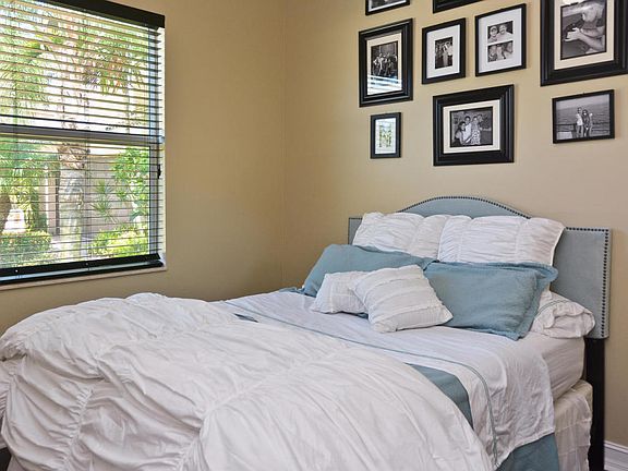 Absolutely beautiful lakefront home with all the upgrades in desirable Canyon Springs! Throughout this charmer you will find 24'' marble flooring in living areas and wood laminate in all bedrooms, volume 10 foot ceilings, lovely blinds, and an open single story floor plan. Your upgraded kitchen with extended breakfast bar features granite counter tops and back splash, stainless steel GE Profile appliances, and pantry. The master suite boasts both His and Her closets, dual sinks, quartz counter tops, and an impressive onyx shower. The guest bath is luxuriously appointed with glass vessel sink and onyx shower. For your convenience, there is a separate laundry room with wash basin and a full set of hurricane panels. Room for a pool, perfect location on quiet cul-de-sac with no rear neighbors!