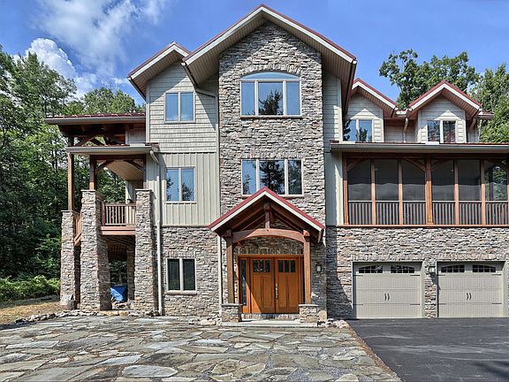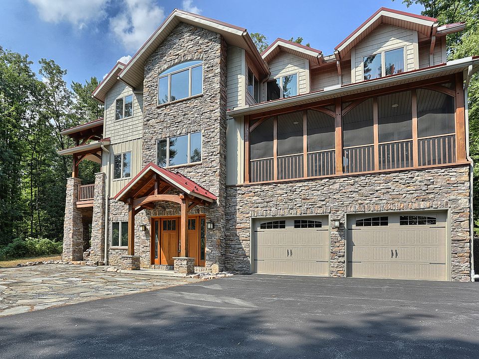 Escape to a vacation like feel in this stunning custom built 3-story timber frame home tucked away 5.2 private, wooded acres! The main level hosts an executive kitchen with granite countertops, stainless steel appliances including a double oven, new refrigerator, microwave, Villeroy & Boch sink, trash compactor, and ample storage. Enjoy relaxing by the stone fireplace in the living room with vaulted ceilings and large windows providing lots of natural light. The master bedroom features 2 walk in closets and a spa bathroom with dual sinks and a soaking tub. New large capacity washer and dryer convey. Heading up the spiral staircase to the second floor is an interior balcony overlooking the living room, two additional bedrooms, and a second full bathroom. Lower level of the home includes a media room, bedroom with half bath, and plenty of storage. Beautiful new bamboo hardwood flooring throughout. Elevator travels between all 3 floors and is serviced annually. Exterior of the home has a maintenance free Trex deck and patio perfect for entertaining. Enjoy morning coffee with a view on the screened porch, accessible from both the dining room and master bedroom. Hot tub pad is wired and ready for hot tub installation. Efficient geothermal heat. New paint throughout. Three car garage. 50 year metal roof has 39 years left! This home is a perfect primary residence, vacation home, or investment opportunity with a 3 year booking history and 4.8 star rating to transfer to a new owner. Must see to truly appreciate, schedule your showing today!