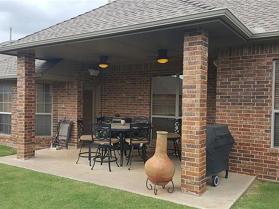 Fantastic home in Piedmont Schools District! Featuring 3 Beds + an Office, Generous Living Room w Access to the updated Kitchen w Gas Range, Walk in Pantry, Lots of Counters and Cabinets and Access to the Covered back patio with Eastern Exposure. The Master is Spacious w Pullman Ceilings, Master bath has double Vanities, Walk in closet, Separate Whirlpool Tub and Shower. 2nd and 3rd bedrooms share a Jack & Jill Bath. There's a half bath for your guests convenience. Easy Access to Turnpike and OKC Metro. New energy efficient windows installed 2020. New water proof Pergo flooring installed 2021 in all beds, living and office. New fence on two sides and added concrete sidewalk from front sidewalk around to newly extended patio. Backyard includes a spacious storage building for all of your lawn equipment.
