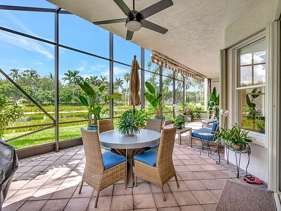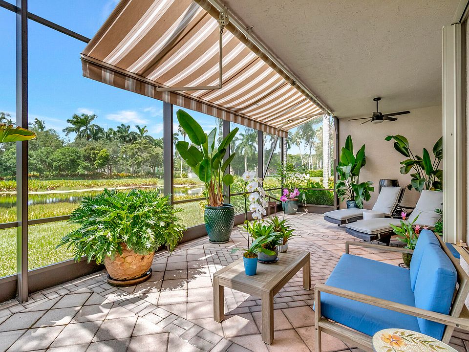 Escape to your private ''ZEN-LIKE'' setting. This fabulous Mediterranean model is located on one of the best private lake lots in Valencia Shores. Your extended 39 x 16 newly screened-in patio sits across from the heavily landscaped entranceway with no neighbor in the rear. It's all about enjoying nature and bringing the outdoors in. Patio comes fully furnished at no extra cost (Pottery Barn & West Elm) w/a couple small exclusions and adds amazing ambiance, making it a perfect location for ''Al Fresco Dining.'' For added outdoor comfort, a remote-controlled retractable awning was just installed. Sit back and enjoy your morning coffee while listening to the tranquil water feature amongst all the new plantings...this is what south Florida living is all about. From the moment you arrive, pride of ownership is so apparent from the beautiful streetscape and detailed-out landscaping. Entry is warm and inviting with brand new front screening along with an impact glass front door sidelight. Fresh new interior paint, & custom lighting throughout create a bright and spacious feel.