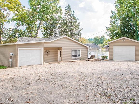 Lake views on 3 sides with this 'Point' location + some of the longest shore line available on East Lake! This home has been completely updated to feature a glass double sided fireplace between dining & great room. Hardwood floors in all but one bedroom. Amazing kitchen has granite counters and county sink + SS appliances. Over 10 windows allow for huge views of the main body, hot tub off MSBR on cove side. Home has been opened up from kitchen to dining with large opening to great room. Extensive landscaping creates low maintenance paths from side patio to fire pit and one dock while front deck leads to another dock. Docks have stainless steel cable for 'see through' look. 4 lots combined=plenty of parking +2 garages and a shed-150' shore