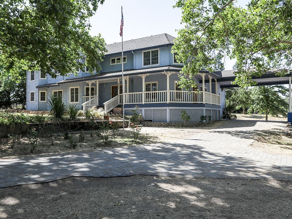 Quality built country estate on 2.8 acres of usable land with seasonal creek and pond area. Wrap around redwood front porch, 5/8 oak hardwood flooring, newer carpeting, Anderson wood windows, huge 5 car garage with a work shop. Irrigation water included. Mostly original condition, some deferred maintenance and could use some upgrading. Plenty of upside potential on this amazing location!