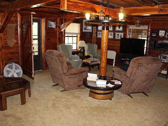 Beautiful log home with room to spread out. Open floor-plan downstairs makes entertaining a breeze. Take note of many local timber details throughout the custom built home. Close to water activities & hunting. Make this your home or weekend getaway!