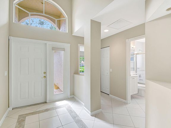 Charming 3/2 lake view home in 55+ community. This home offers a serene lake view and is perfect for those seeking a peaceful, active lifestyle. The interior has been freshly painted in a neutral color, giving the home a bright and welcoming feel. Brand new carpet has been installed in all bedrooms, while the rest of the living space features ceramic tile on the diagonal. The vaulted ceilings create a sense of spaciousness throughout. Enjoy your morning coffee in the breakfast area, complete with a bay window that offers views of the lake. The primary bedroom boasts his and hers walk-in closets, and the home includes a separate laundry room. A 2-car garage ensures plenty of parking and storage. The resort-style amenities in this community are designed to enhance your active lifestyle. Residents enjoy access to The Shores Bistro with indoor/outdoor dining, community room, card rooms, arts and crafts/multipurpose rooms, a putting green, tot lot for grandchildren visiting, basketball court, aerobics room, locker room and restrooms, sauna and steam rooms, indoor spa, massage room, a salon, water aerobics, tennis courts, pickleball, bocce ball, indoor racquetball, billiards, ping pong and more. Valencia Shores offers the perfect balance of relaxation and activity for those seeking a vibrant 55+ community with a resort-style atmosphere.