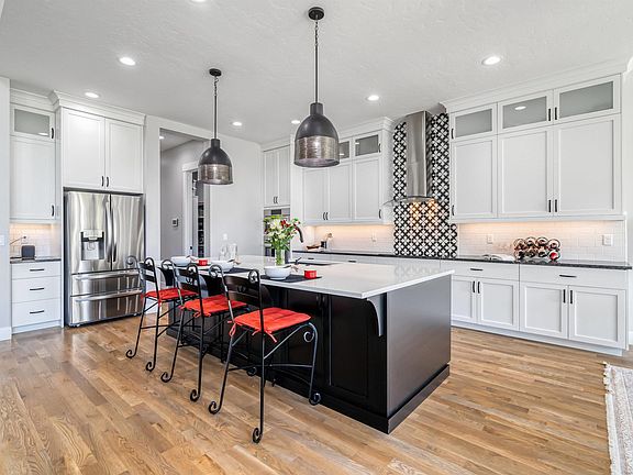 Step into Creekside luxury with the Cottonwood Vault floorplan, a home filled with exceptional upgrades. From the expansive entryway to the grand great room with 21'6" ceilings, this space exudes elegance. Oversized windows flood the home with natural light, enhancing the open layout, which features a stunning quartz kitchen island, Bosch stainless steel appliances, an induction cooktop, and abundant storage, including a large pantry. The primary suite is your personal retreat, complete with smart lighting, blackout blinds, a spa bath with a soaking tub, heated floors, a double shower, and a spacious closet. Additional features include beautiful hardwood floors, a cozy gas fireplace, and a mudroom leading to a 3-car tandem garage. The covered patio offers tranquil views of the foothills and the creek, with no rear neighbors to interrupt your privacy. Enjoy the serenity and style of this meticulously maintained home.