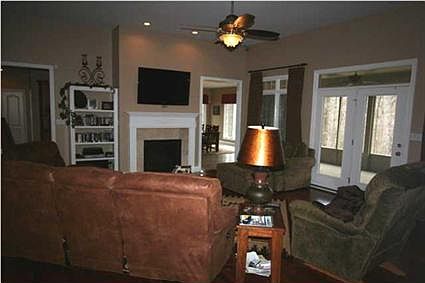 Fantastic 2006 Parade Home in Waterford Place Subdivision is like new! Situated on a great 1.73-acre private, wooded lot, this home features large open living areas and detailed architectural elements giving it both livability and character. When you enter the home, you will find 11' ceilings in the foyer, formal dining and great rooms, and arches and marbled columns divide the living areas for a dramatic space. The formal dining room is accented in crown molding and is open to the great room, which is luxurious with Brazilian cherry flooring, a gas fireplace with detailed mantel and surround, and custom bookcase. A spacious, well-equipped, dream kitchen will make you catch your breath, offering copious Kempf natural cherry cabinetry including some with glass fronts, storage pantry and planning desk, castled and topped with crown molding. There are stainless appliances, lots of solid-surface counters, a seamless sink and raised breakfast bar, and the adjoining breakfast room is large enough for gatherings of both family and friends who will love the large set of windows overlooking the wooded grounds. The master bedroom suite will invite you there as a retreat at the end of your day, and includes an eye-catching geometric trey ceiling trimmed in crown molding and a private full master bath with his-and-her twin vanities, a corner oval whirlpool tub with travertine tile surround, tiled walk-in shower and a deep walk-in closet. In the lower level, you will find a huge family room with a dining area and kitchenette, which includes crown-topped cabinets with a wine rack, service sink, dishwasher and refrigerator. There is also the fourth bedroom and another room that includes gym flooring, making it perfect for an exercise room or play room. Outdoors, the full screened porch overlooks the wooded back yard and reaches across the back of the home between the kitchen and the master bedroom, and this home has a 3.5-car side-load garage for added curb appeal, along with professional landscaping. A kidney-shaped patio extends out past the screened porch above, and the 6-person hot tub there is included. This home is exceptional with so much to offer and a must-see!