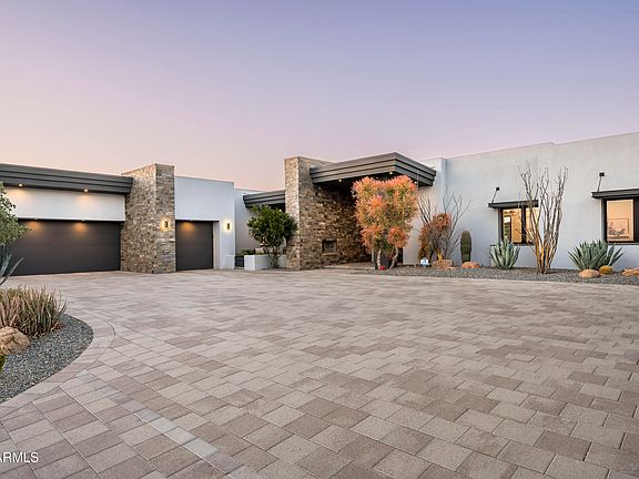 8822 Chino - Welcome to this updated modern masterpiece in the heart of North Scottsdale. This 5,800-square-foot contemporary estate offers a perfect blend of luxury, modern design, and unparalleled desert living. Nestled on an expansive 1.56 acre lot with breathtaking views of the McDowell Mountains, this smart home offers both seclusion and convenience, just minutes from premier shopping, dining, and outdoor recreation. Upon entering, you're greeted by a grand open-concept living space featuring soaring ceilings, sleek lines, and walls of glass that seamlessly connect the interior with the stunning desert landscape. The spacious kitchen is a chef's dream, equipped with top-of-the-line appliances, custom cabinetry, and a large center island, perfect for entertaining. The adjacent great room boasts a dramatic fireplace and expansive windows that allow natural light to flood the space. This home offers six spacious bedrooms, including a luxurious primary suite with a private patio capturing mountain views, and a large split primary bathroom, affording space and privacy to each homeowner. There are four additional bedrooms with en-suite bathrooms, and the office could be easily converted to a fifth en-suite. Step outside to your personal desert oasis, where an oversized patio with a built-in BBQ, TV, sparkling pool, and spa await. For those with an active lifestyle, enjoy the sunken pickleball court and custom putting green, providing endless opportunities for outdoor recreation and entertainment. With sweeping views of the surrounding desert, this backyard is the perfect setting for both relaxation and activity. Experience the best of Arizona living with this exceptional home in the heart of North Scottsdale's Pima Acres.