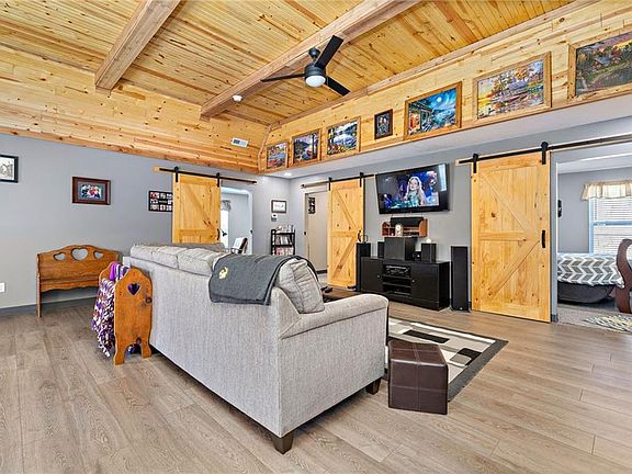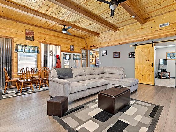 Beautiful new Lake Perry 4-bedroom, 2-bath Barndominium. Built in 2021 with complete open concept. Comes COMPLETELY FURNISHED. With newer washer and dryer. All appliances, dishes, and utensils stay in this "Cute-as-a button" kitchen. Newer stove has air-fryer oven. Walk-in shower in main bath, with tankless hot water heater. Storage shed; also 18’x22’ patio with fabulous Outdoor Kitchen. Large 26’x35’ drive-through Carport for boat and RV Storage. One block from large, newly updated neighborhood Swimming Pool. 5-minute walk to lake. Recently updated Longview Boat Ramp is only one mile away. 18-Hole Longview Disc Golf Park less than a mile. Nearby walking path of 27-mile loop of scenic Lake Perry. Many folks refer to the Perry Lake area as the "Little Ozarks". A tribute to the beautiful, tree-covered hills that characterize the Delaware River watershed. Make this vacation get-a-way your home or a beautiful Airbnb.