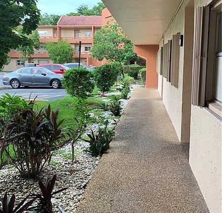 Location, Location, Location!!! 2 bed 2 bath ground floor condo in a well kept, quiet, 55+ community. This ground floor corner unit is just steps from its parking space! This home has good natural light, tile throughout, bathrooms remodeled in 2018, easy close accordion hurricane shutters for storm protection, and a spacious patio overlooking the golf course and views of the lake. Newer granite kitchen countertops, refrigerator, stove, and stainless sink. The community offers lots of amenities to enjoy: clubhouse, HEATED pool, ping pong, pool table, and bocce court. Conveniently located to highways, entertainment, restaurants and shopping. Grocery and major drug stores are within walkable distance. Community shuttle stop steps away or take to connect with public transit.