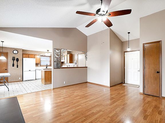 Welcome to this 3 bedroom 3 bath home with functional layout. Upstairs are 2 bedrooms, a full bathroom, with a primary bedroom that has it's own private en-suite with walk in shower. The living room feels spacious with the vaulted ceilings as it flows seamlessly into the kitchen and dining area. The kitchen is equipped with a pantry, an eating bar and all of the appliances are included, making it move in ready. Downstairs the finished basement has brand new plush carpet in the family room, bedroom and bonus room. A full bathroom, laundry room with washer and dryer remaining, and storage space, complete the basement. Step outside the french doors from the living room to a spacious backyard with a large deck that is perfect for entertaining. The privacy fence and storage shed are two more great features of this home you will appreciate, all while being in a nice neighborhood and Derby schools. Schedule your showing today!