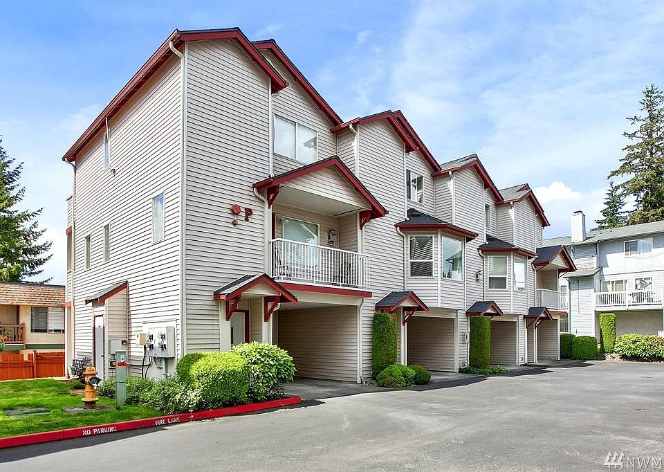 Great floorplan for this light, bright townhome with convenient access to shopping and Hwy 99. Lower entry from the oversized one-car garage leads upstairs to a spacious, light-filled living room with bay window. Efficient kitchen with ample counter space and dining area, plus utility space and powder room. Upstairs you'll find the Master Suite with attached bath and large walk-in closet, as well as a second bedroom w/private balcony and second full bath. FHA approved complex.