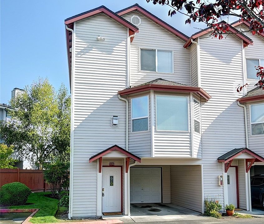 Wonderful end unit townhouse with a spacious floor plan featuring 2 bedrooms, 2.5 baths and 2 balconies. Open kitchen with gas cooking. Light and bright living room with enormous bay window and cozy fireplace. Master suite with walk in closet. All appliances stay. Huge 1 car garage plus 1 covered tandem parking. Tons of storage space. Close to Boeing, restaurants, and shopping. Easy access to I-5, 526, and Hwy 99.