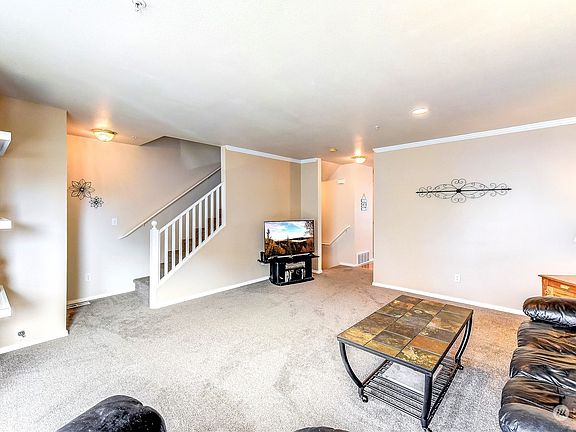 Motivated seller welcomes you to this spacious, freshly painted, three-story townhome in SUNSET PARK SOUTH!! Main floor features large living room w/huge bay window, ½ bath, open kitchen design with gas range, dining area, balcony & washer/dryer. Upper level features a roomy primary bedroom w/private ¾ bath & walk-in closet. 2nd BR w/balcony deck & an additional full bath. All baths have beautiful granite countertops. New carpet, & new laminate flooring. There's parking for 2 in the oversized garage/storage & carport. Guest parking available. HOA dues cover water, sewer, garbage & yard care. Suitable walk/bike score & close to shopping, bus lines, restaurants, breweries & entertainment. Nearby Boeing, Amazon hub & a few minutes to freeways.