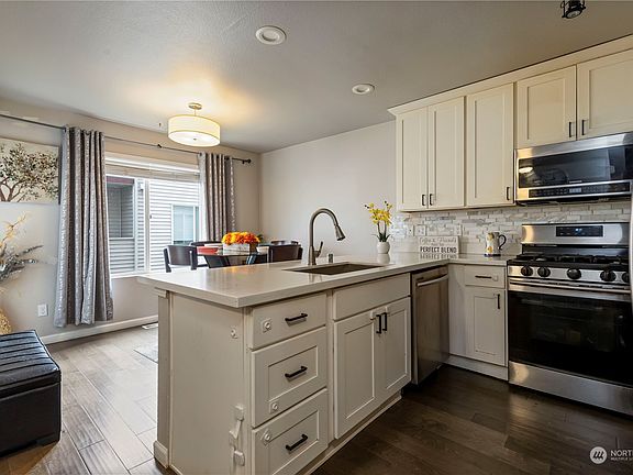 Hidden Gem at an affordable price & move in ready! Must see to appreciate home & value you get at this price. Great starter home or as an investment property. Beautifully updated townhouse located in Everett, close to Boeing & easy access to I-5. Spacious open floor plan with featuring 2 beds, 2.5 baths & 2 balconies. Gorgeous, remodeled kitchen with quartz countertops, white shaker cabinets with lots of prep room. Large living room with tons of natural light that leads you to a balcony where you can enjoy a cup of coffee or glass of wine at night! Spacious primary bedroom & bathroom with a walk-in closet. Large 1 car garage with tons of storage plus additional covered parking. Close to future light rail & Everett Mall. New water heater.