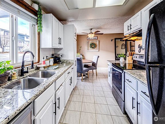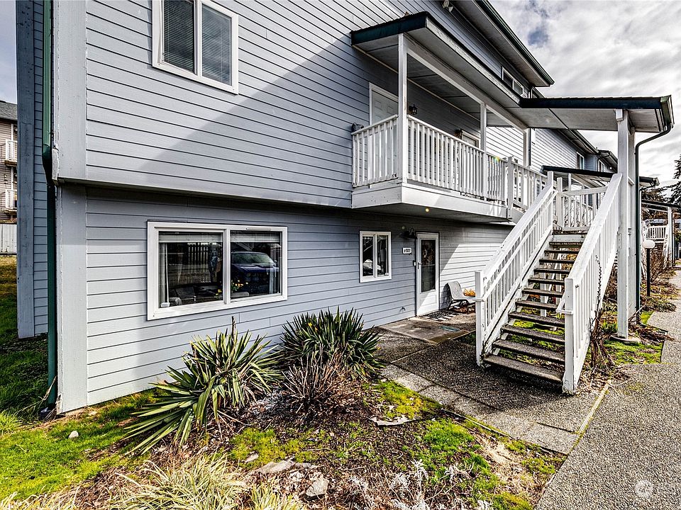 Well maintained, first level corner unit condo featuring a bright and open layout with a nicely sized kitchen featuring gleaming granite counters and open dining area. Spacious living room with wood burning fireplace (electric insert) & slider out to the back patio. Large primary bedroom with en-suite 3/4 bath. Unit comes with a 2nd bedroom, full guest bath and in unit washer and dryer too! No carpeting throughout. Private, enclosed covered back patio features a 5x8 locking storage unit which is finished and currently used as a small work studio. Playground, sports court, club house, cabana & fenced dog-run on site. Tons of guest parking. Conveniently located close to I-5, Boeing, shopping, restaurants & bus. No Rental Cap and low HOA dues!