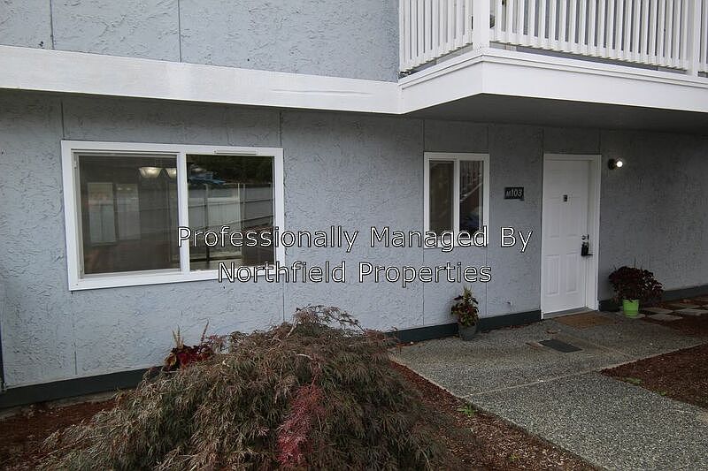 Sunset Park Condos 1st Fl Condo, 2BR/1.75 BA, 1147 sf, 1979 remodeled corner condo with wood fireplace and mantle; fenced patio with garden space and storage area; and coat closet in entry hallway. Galley kitchen with glass top stove, garbage disposal, microwave and dishwasher. Dining area overlooking living space and patio garden. Full Bathroom has a full bath with handlebars and nice vanity with mirror. The first bedroom is about 9 x 12 ft. with a double closet area. Master Bedroom can hold a King-size bed plus more, three closet doors and 1.75 BA Suite overlooking back grassy area of complex. Hallway has large closet, stackable Washer/Dryer and utility closet with HWT. Building solid and noise can be minimal. Tenants responsible for cable, wi-fi, electrical and abiding of HOA Rules and Regulations. Heat is electrical wall heaters. Dogs under #35 considered with refundable pet deposit or No Smoking on premises. Reserved Parking Space. Sunset Park has a Sport Court, Dog Park, Cabana, and a Playground. Terms: 12-month lease, upon lease signing a Full Month's Rent, $800 Security Deposit, $150 Non-Refundable Processing Admin Fee, and $43-65 Application Fee for all over 18 years old. If this property looks interesting, please feel free to view it at the best time for you. Please contact Joanna, Property Manager, Northfield Properties, Inc. The address is 8823 Holly Dr, Unit M-103, Everett, 98208 located near Evergreen Way and Casino Rd. Convenient location near public transit, Hwy 99, I-5, Fred Meyer, and local amenities. Applications accepted after Tenant Criteria understood and application link is given by showing property manager. We do not accept comprehensive re-usable tenant screening reports also known as portable screening reports. Do not apply under any other site, that's at your own risk. Thank you.