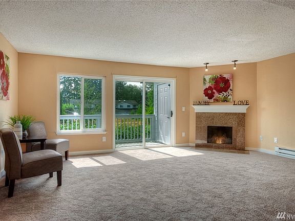 Commuters dream! Nestled away from the main roads yet convenient location to Boeing Everett plant & shopping. Ready to move in with fresh paint & carpet! Stylishly updated townhouse with two bedrooms & two baths. Kitchen has granite tile counters, newer cabinets, a pantry & all appliances stay. Both bathrooms have been updated with vanities, tile counters & backsplash. Wood burning fireplace, stackable washer & dryer, & a nice sized balcony with storage. Fenced Dog area & a play area on site