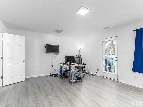 Beautiful move-in ready townhome w/1-car garage in desirable North Raleigh! Open floor plan w/hardwoods on main level. Kitchen features new paint, oak cabinets & stainless appliances. Large owners suite w WIC. Secondary bdrm on 3rd; lower level office, bonus room or bedroom w/ new LVP flooring. Entertain or grill on the back deck overlooking wooded buffer. Enjoy exterior maintenance by HOA for low maintenance living. Excellent location w/nearby shopping & dining; easy access to US-1, Raleigh, Wake Forest!