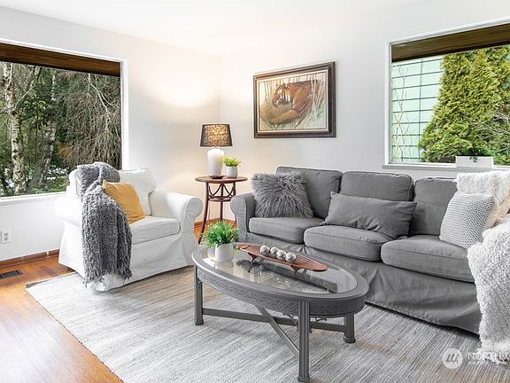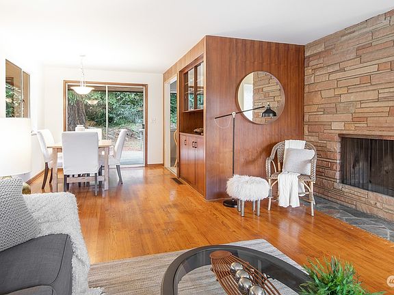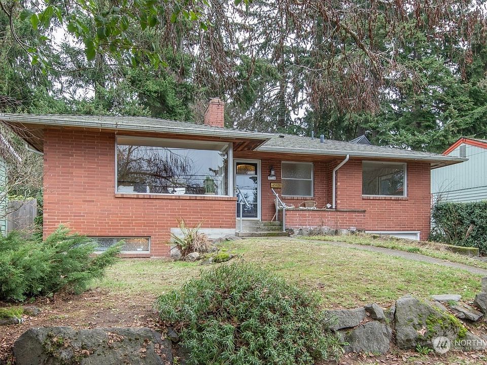 1958 Brick Mid Century on a very quiet street a few blocks north of Green Lake. Looking for that solid mid century to make your own? Your personal touch will make this house really shine. Original details in tact: Flagstone entry. Unique corner fireplace. Hardwoods on main. Spacious living room with large windows. Dining room opens to covered back patio and huge backyard. Spacious eat-in kitchen. 2 beds and a full bath round out the main floor. Downstairs is a non-conforming ‘third’ bedroom, a 3/4 bath and a generous den/media room with a second fireplace. Additional storage and a deep attached garage complete the lower level. Newer roof, furnace & water heater. Set on a large 7,339 sq ft lot with DADU potential.