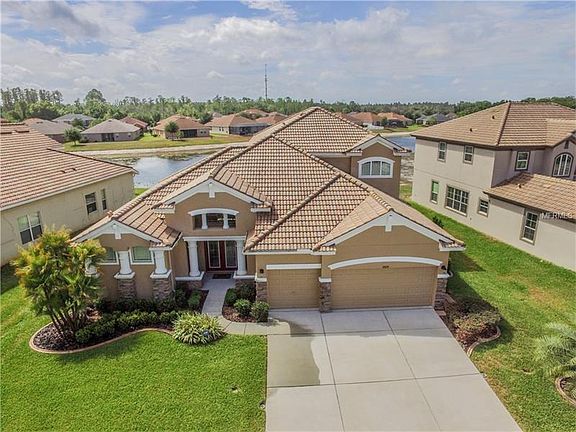 Gorgeous Home in Waters Edge Gated Community. This Waterfront 5 Bedroom 4 Bath with 3 Car Garage has been upgraded with every detail. The Master Bedroom retreat with its water views - downstairs and tucked away from the rest of the rooms, the ensuite bathroom boasts a walk in shower, Dual Sinks, luxurious garden tub and walk in closets. You can prepare a royal feast in the spacious open concept kitchen with 42" Maple cabinets over solid Granite countertops and stainless steel appliances. Then enjoy in the formal dinning room or the family room. Upstairs adds even more space with a large landing leading to more bedroom and baths. The Plantation shutters throughout house offer privacy from the outside world. At the end of the day sit outside on your brick patio surrounded by New Sod all around mature landscaping while taking in the waterviews.