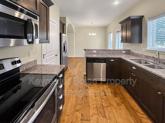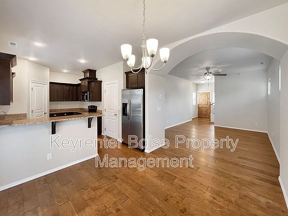 Step into this inviting residence, where comfort and convenience harmoniously blend. The home welcomes cats and small and medium dogs under 60 pounds, making it a perfect fit for pet lovers. Experience year-round comfort with central heating and air conditioning, while the luxury engineered wood flooring and ceiling fans add a touch of elegance throughout the living spaces. For added convenience, a washer and dryer are included, though maintenance and upkeep are the renter's responsibility. The kitchen boasts hardwood cabinets, stainless steel appliances, and granite countertops, complemented by recessed lighting and a pantry. Enjoy meals in the charming dining nook or at the breakfast bar. The master bedroom features an ensuite bathroom with dual vanities and tile flooring, while the bedrooms offer cozy carpet underfoot. Outside, a fully fenced backyard and a spacious patio provide an ideal setting for outdoor relaxation and entertaining. Located within walking distance of Crunch Fitness, LongHorn Steakhouse, The Cheesecake Factory, Boise Aquarium, Boise Sign, and the Idaho Reptile Zoo, this home places a variety of dining, fitness, and entertainment options right at your doorstep. *The Basics: Landscaping: HOA provides landscaping services, except for the maintenance of backyard trees. Lease Term: 12-month initial lease term. Utilities Included with Rent: NONE, Tenant responsible for all utilities. Pets Policy: Cats and Small Dogs considered with additional screening required; $50 monthly pet rent, $250 one-time pet fee, and $250 additional security deposit per pet. All pets & animals MUST be registered and approved during the application process. *IMPORTANT THINGS YOU SHOULD KNOW: This is a No Smoking rental property. Application processing time is 2-3 business days. Please review Keyrenter's Application Criteria prior to applying. All household members over the age of 18 must complete an application. No sublease/Airbnb etc. Other restrictions may apply per lease contract. Security Deposit: Equal to one month rent + $200. All Keyrenter Boise residents are enrolled in the Resident Benefits Package (RBP) for $50/month which includes renters insurance, HVAC air filter delivery (for applicable properties), pest control service, credit building to help boost your credit score with timely rent payments, $1M Identity Protection, our best-in-class resident rewards program, home buying assistance, and more! More details upon application. Other terms and conditions may apply. All information including advertised rent and other charges are deemed reliable but not guaranteed and are subject to change. Amenities: Pet Friendly (under 60 pounds), Central Heat & Air Conditioning, Luxury Engineered Wood Flooring, Ceiling Fan, Hardwood Kitchen Cabinets, Stainless Steel Appliances, Granite Countertops, Dining/Breakfast Nook, Breakfast Bar, Recessed Kitchen Lighting, Pantry, Master Bedroom Ensuite, Bedroom Carpet, Dual Vanities, Bathroom Tile, Fully Fenced Backyard, Backyard Patio, Walkable To Crunch Fitness, Walkable To LongHorn Steakhouse, Walkable To The Cheesecake Factory, Walkable To The Bosie Aquarium, Walkable To The Boise Sign, Walkable To Idaho Reptile Zoo, Washer/Dryer