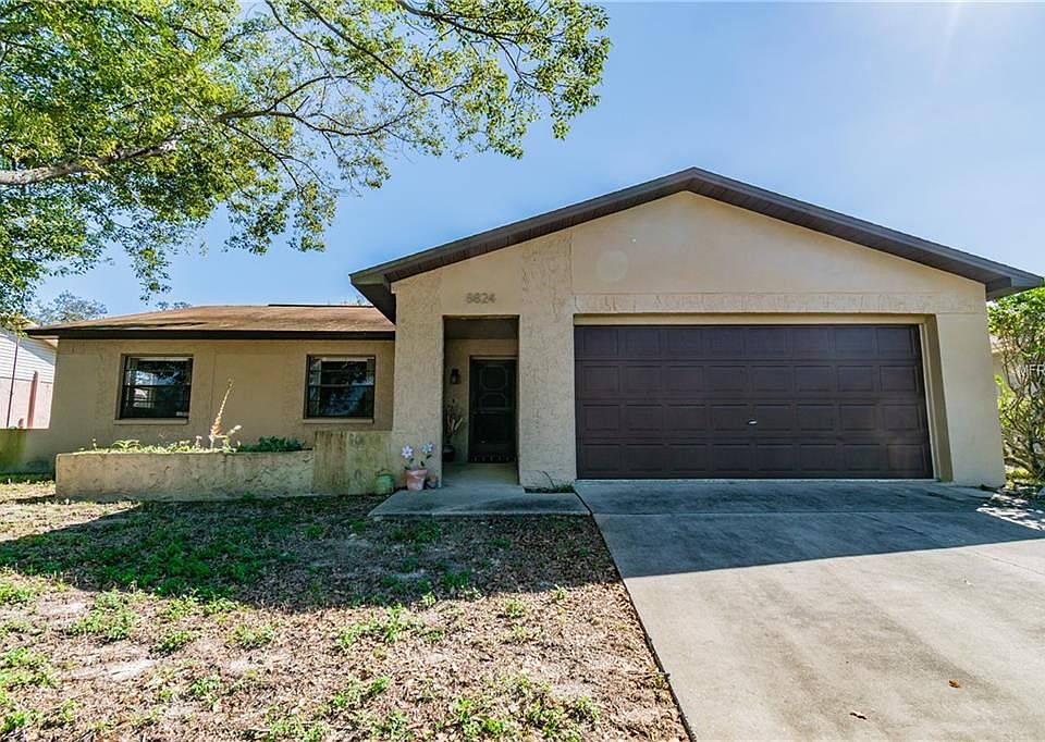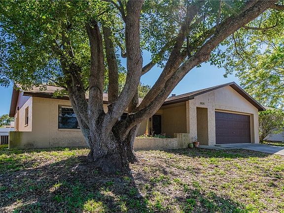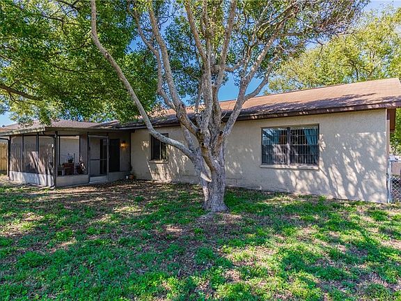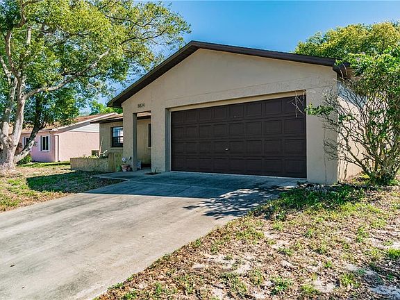 WELCOME TO YOUR SPACIOUS NEW HOME at 8824 Wabash Ln, Port Richey in the lovely community of Driftwood Village in SUNNY FL. Key features in this 3 bed, 2 bath, 2 car garage home are fully fenced yard, screened lanai, front courtyard, carriage lights & mature tropical landscaping. As you step inside the foyer, you'll LOVE the SOARING ceilings & stone FIREPLACE with mantel in the living room. The OPEN FLOOR PLAN consists of the kitchen, living & dining rooms ILLUMINATED with natural SUNSHINE streaming through the windows. Your LOVELY kitchen has all retro appliances, glass mosaic backsplash, BIG pantry, plentiful cabinets for storage & an EXPANSIVE breakfast bar where you can enjoy a casual meal. Sip your favorite beverage in your screened lanai while enjoying the evening breeze. The master bedroom can easily accommodate king-size furniture, has a walk-in closet & big picture window. The comfortable master bath consists of a step-in shower & frosted window for added light. The remaining 2 bedrooms feature ample closet space. There are no carpets anywhere, mainly laminate floors throughout the home. The full bath has a tub/shower combination. There is no lack of storage in your home with closets in the hallway & built-in shelving in the garage. In the garage, you'll find the washer/dryer (included in sale), side door entrance, water heater & automatic door opener. AC (2013), roof (2006). Your FANTASTIC home is located near schools, shopping, beaches & more. THIS IS YOUR FUTURE HOME!