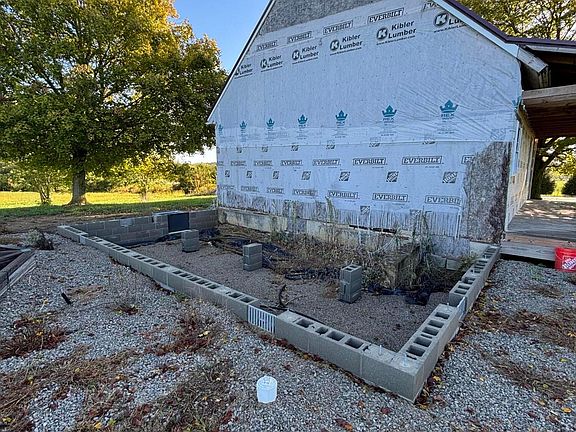 This property is ready for its next chapter! The home has been completely gutted and newly framed inside, with brand-new vinyl windows and new roof already installed. It's designed to be a 3-bedroom, 2.5-bath layout, but the possibilities are endless to make it your own. The back of the home is ready to be framed in, with the foundation already in place. A new side deck have been added, and many key updates and repairs have already been completed to get the project to this stage. Well is dug and septic tank is on risers.