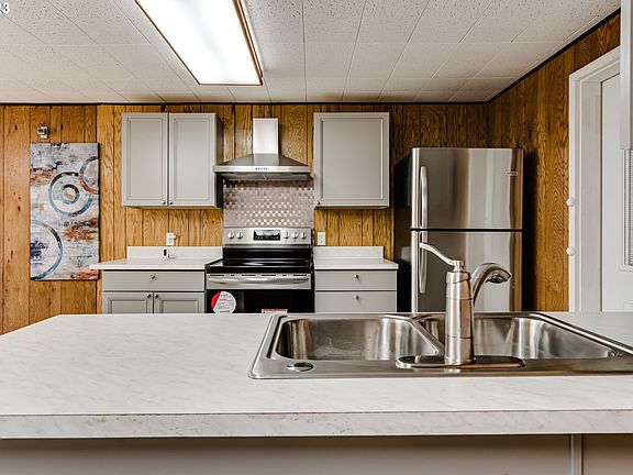 - Included: Free-Standing Range, Range Hood, Stainless Steel Appliance(s), Electric Water Heater