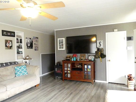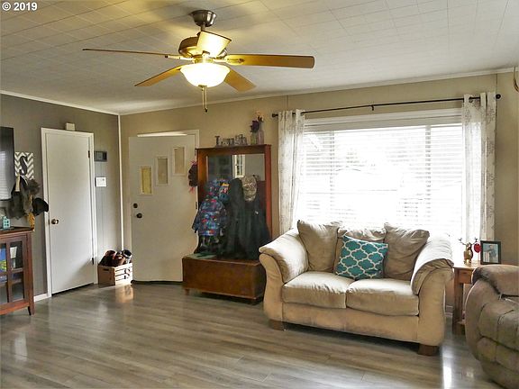 Move-in ready, 2 bedroom, 1 bathroom home located on a large corner lot in Mapleton. Spacious living room with large picture windows in the living and dining room. Beautiful new laminate flooring throughout the main living areas. Attached carport and workshop/storage room with French doors. Grass yard with raised bed and covered front patio.