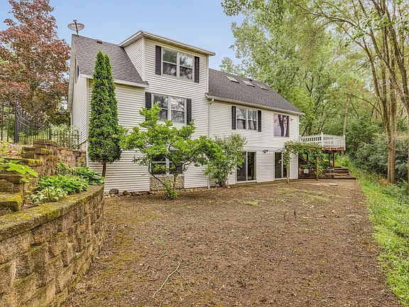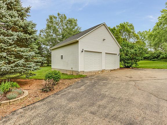 Immerse yourself in nature year round! Situated on a peaceful, private 7 acres surrounded by mature trees, this 4 bedroom cape cod features a country setting and the convenience of being close to shopping, commuting, parks and schools. Open concept home has vaulted shiplap wood ceilings, new Pergo flooring (2016) throughout and lots of windows to view the greenery from every room. Dining room has sliding doors that open to the covered patio which leads to the 2nd story deck. Kitchen includes all appliances, ceramic tiled back splash, pantry closet and walk through access. First floor laundry room complete with washer & dryer and built in shelving. Two main floor bedrooms (large enough to be master bedrooms for those who don't want stairs) And a full bathroom on the main floor as well. Upstairs you'll find the master suite complete with private loft. Skylights brighten up the loft space which also has an area with a built in desk . Master bedroom features walk in closet space, and full master bathroom complete with jacuzzi tub. Fully finished Walk out basement is perfect space for a family room or rec room (Pool table included). 4th bedroom has closet and full egress windows. Two car attached garage and newly built (2016) 2 car detached garage/shop. Lots of room for a workshop or storage for toys. A must see!!