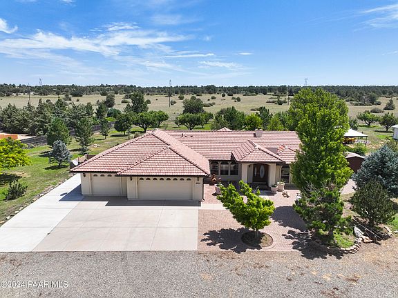 This property is located off Williamson Valley close to trails! RARE OPPORTUNITY to own an exceptional horse property in a coveted neighborhood where homes rarely come up for sale! Ideally situated on a 2+-acre site boasting majestic Granite Mountain views and located within proximity to the Granite Mountain Trailhead. No need for a horse trailer! Fully fenced and complete with recently built barn, this property is a horse and dog lover's dream! Tranquil rear patio overlooks a veritable orchard of apple, cherry, peach and pear trees--ripe for picking! Livable interior features: this home has a split floor plan and the Bedrooms are spacious and 2 full baths! The garage has coating on the floor and very spacious.