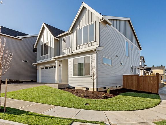 Bed & bath on main floor! Mission shaker style almond stained cabinetry with multiple upgrades. Quartz slab countertops in kitchen and bathrooms with undermount sinks. Delta Woodhurst black bathroom plumbing fixtures. Kitchen appliances include stainless steel Whirlpool 5-burner gas cooktop, wall oven, wall microwave, stainless steel tub dishwasher and chimney hood vent. Raised gas fireplace with floating box beam mantel. Upgraded flooring and lighting throughout home. Fenced with gate, front and rear landscaping with sprinkler system on timer. Tankless water heater, central A/C, Earth Advantage Certified with available Energy Bill Guarantee.