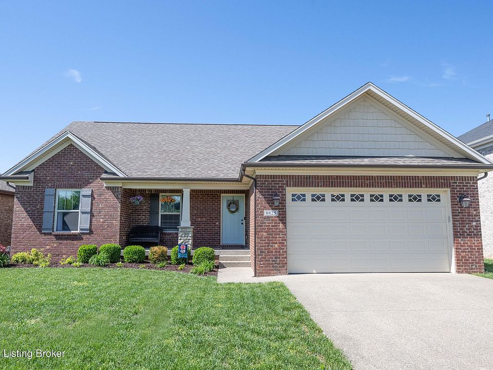 Welcome to this beautifully maintained ranch-style home, built in 2017, in the highly desirable Estates of Stony Farm neighborhood in sought-after Jeffersontown! With undeniable curb appeal, it features a charming covered front porch, a double-wide driveway, and a spacious 2-car garage.