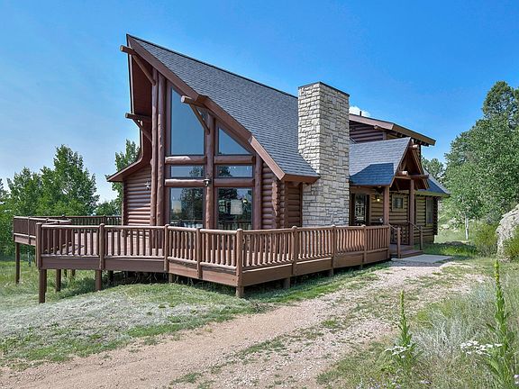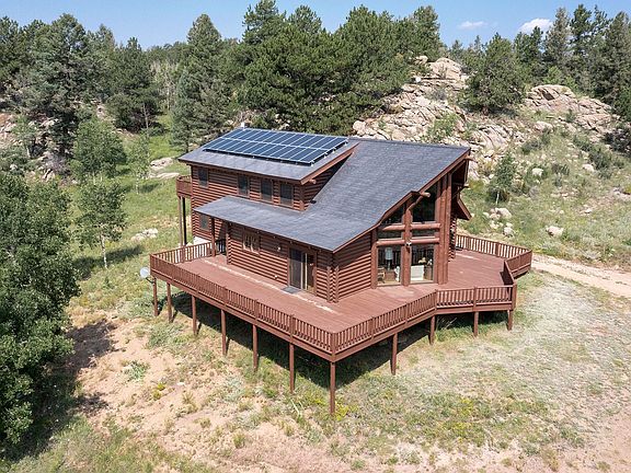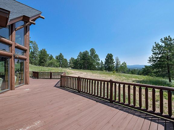 One of the most beautiful settings you will find, this 3535 square foot log home, completely off grid, will make your heart leap! You will enjoy the 26 foot high soaring, vaulted ceilings with the massive beams and towering windows looking directly at Pikes Peak! Gather around this warm fireplace in this amazing Great Room. The rest of the main floor consists of 2 bedrooms, a full bath and a laundry room. The main floor is wrapped on three sides with a very large deck to take in the fresh mountain air, 360 degree views and experience all the wildlife. The comfortable loft and Master Suite take up the whole top floor providing privacy! You even have a large balcony/deck to enjoy your morning coffee with views of the Sangre de Cristo Mountain Range. The Master Bath has everything you would want inclding a jetted tub and separated vanities. The full unfished basement is just waiting to add a couple of bedrooms and family room. There is a finished 3/4 bathroom. The basement is packed full of 4 generations of stuff that will be removed. The nearly 40 Acres the home sits on is purely magical with huge rock outcroppings, gental wildflower meadows, aspen groves and towering pines. The property is surrounded by large parcels including one of the largest ranches around inviting all Colordo wildlife. And all less than one hour to I-25 in Colorado Springs. This is Mountain Living at it's finest!