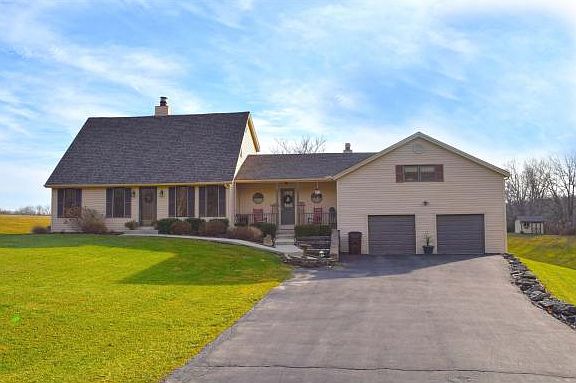A beautiful country setting on almost 10 acres. This transitional home w/3 beds,3 baths & 2 car garage has been meticulously cared for & updated with a new roof,gutters,trim, & garage doors. Kitchen has custom cabinetry,island, & walkout to huge deck that overlooks gorgeous valley & wooded views. Master bed w/master bath & WBFP on 1st level. 2 good size beds on 2nd level. Hunters & nature lovers need to see this one, wildlife galore! 25x19 wkshp could be used as another bed or storage.