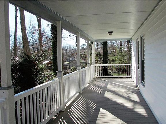 3 Sided Wrap-A-Round Porch! 2 Story Farm style sits back on deep fenced lot NEW FRESH INTERIOR!!!.Master with sitting bay plus 3 more bedrooms upstairs. Open kitchen, breakfast, den with fireplace! Formal LR. Dining room opens to porch makes a great playroom! Main level laundry/mud room. Double over sized detached garage.Neighborhood Pool! Now ready for move in!
