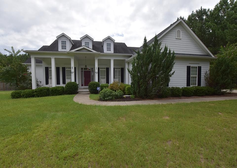 1.62 acre, fenced, level lot. Hardi-plank exterior with rocking chair front porch. Large rear deck with a view of water. Inside is very clean, roomy and ready for a new owner. Awesome master bedroom with 10' ceiling. Double doors open to a master bathroom with double vanities, large soaking tub, separate shower and walk-in closet. Split floorplan offers 2 additional bedrooms and bath with double vanities. Open kitchen with nice cabinets and granite countertops, stainless appliances. Large family room 12' ceiling. Brand new energy efficient A/C unit with built in dehumidifier