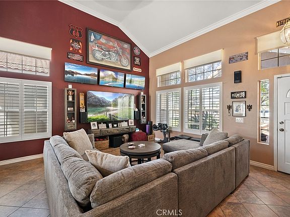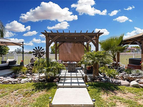 Suburban community living doesnt get better than this: a 12-acre park across the street in front, two schoolyards out beyond your fence I the back provide unobstructed views of the most amazing sunrises and sunsets imaginable. A backyard oasis with 2 waterfalls, 3 concrete pads, 2 gaebos, and a new hot Spring spa assure a remarkable getaway from from stresses of the day and a perfect space to entertain. This beautiful home is within walking distance of Tomas Riveira Elementary and Amelia Earhars MS without leaving a sidewalk or crossing a street. Enter the home to vaulted ceilings and a wired for multi-media entertainment center that is opened up onto the dining area. The kitchen features upgraded quartz countertops, stainless steel appliances, and a double tub sink. Ceramic tile flooring flows throughout the downstairs floor, hardwood on the stairs and upper floor, while crown molding and decorative baseboard trim run throughout the house. A whole house fanwith Cellphone control the 4 upstairs bedrooms, all with views onto the park out front or the schoolyards out back. The primary bedroom has French door access onto the deck and awe-inspsiring sunsets, while a 270 degree see through gas fireplace in the main bedroom. A gated dog run, and large storage shed, and fruit trees include Orange, Plum, Peach and Avocado. Attached 3 car garage with additional driveway parking. Ideal house to enjoy for many years.....