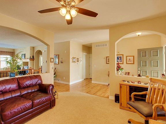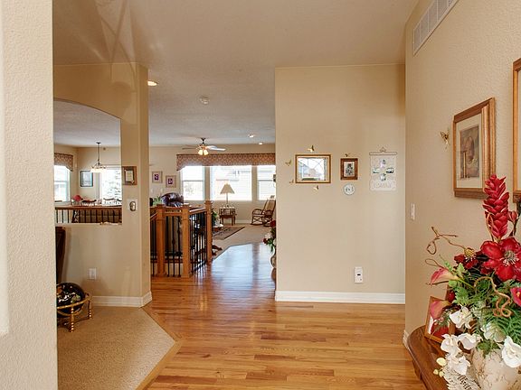 Amazing home at a great price in a premiere golf course community / Very open and bright floorplan / Beautiful kitchen with solid granite counters, raised panel cherry cabinets with under cabinet lighting and stainless steel appliances that include double oven and gas cook top / Large pantry / Kitchen and eating area open to living room that features a wall of windows and gas fireplace / Bright master suite with amazing windows, coffered ceilings and ceiling fan / Master suite with 5 pc bath including huge soaking tub and big walk-in closet / Extensive real hardwood floors through entry, kitchen and eating area / HUGE 610 sf attached garage with room for two cars and a golf cart / Central Vacuum / Welcoming front porch with lots of room (8' x 25') and amazing back patio (28' x 22') / Roof less then 1 yr old / New exterior paint / Professionally landscaped low maintenance yard /