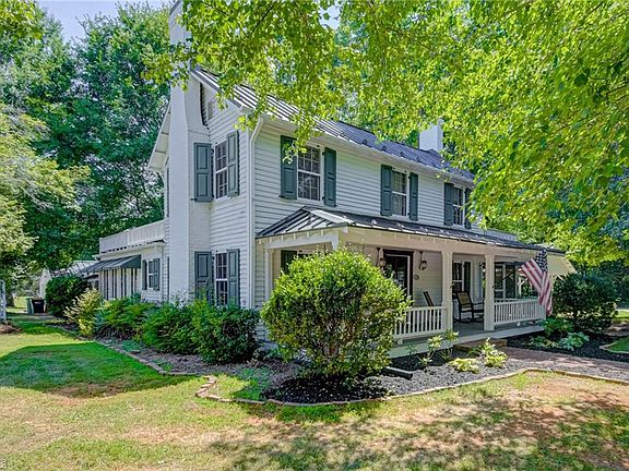 Step into history with this charming 1890 farmhouse, beautifully preserved and updated to offer modern comforts while maintaining its historic charm. Nestled on just under an acre in Wallburg, this home is perfect for those who appreciate timeless elegance and modern convenience. The house features a stunning copper roof and downspouts, spacious porches, original stained-glass windows in the sunroom, and a detached office with electricity and a wall AC unit. With three large bedrooms, two full bathrooms, and historic features like the original front door and glass doorknobs, this home offers comfort and charm. The expansive lot includes a fenced-in backyard, a covered breezeway, an attached carport, a detached garage with a loft, and raised planters for gardening. Located near local amenities, golf courses, the Wallburg pool, grocery stores, and Wallburg Elementary School, this property combines a serene, historic home with modern conveniences. Schedule a viewing today!